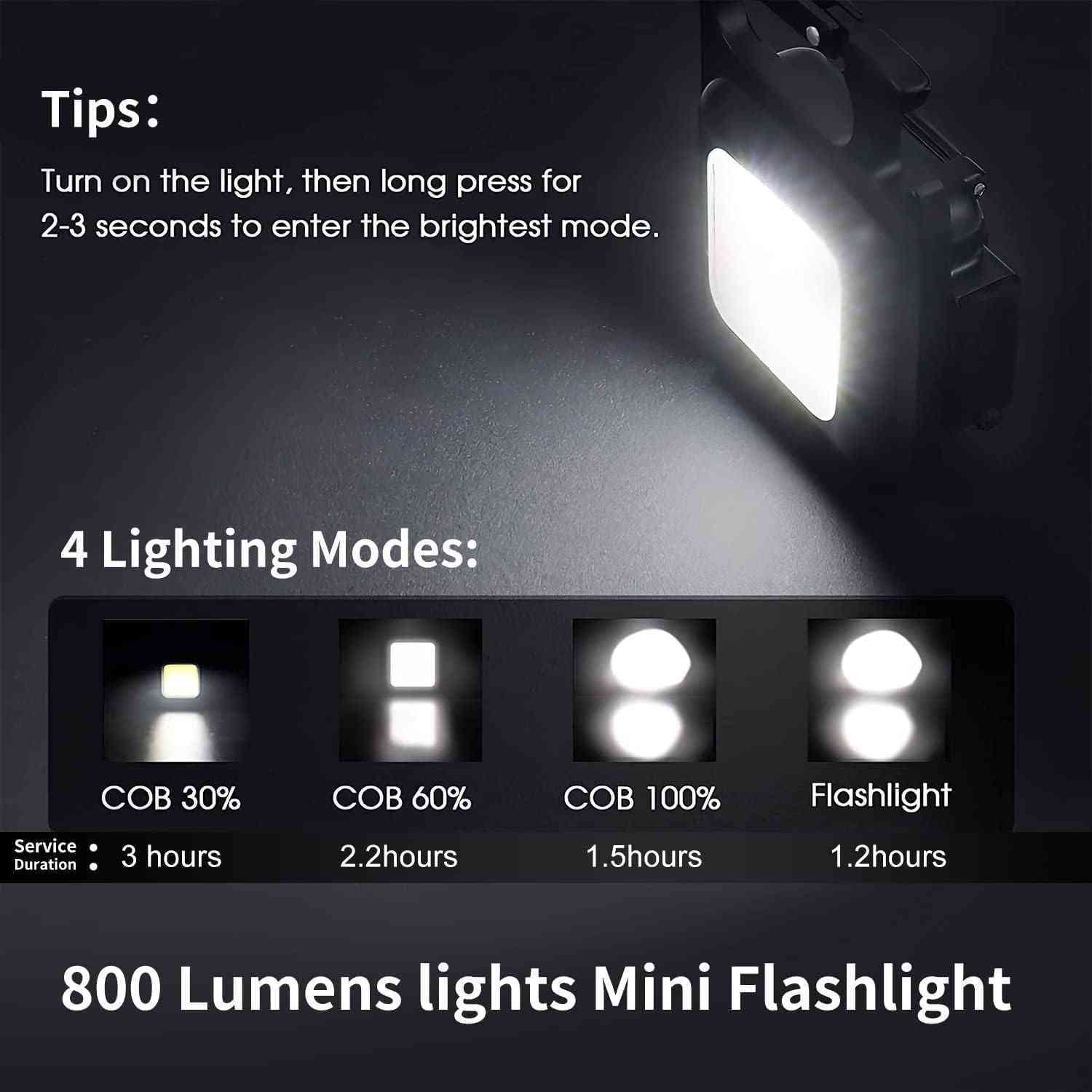 Multi-functional Outdoor Keychain Light with 800Lm COB and 3 Lighting Modes, for Camping, Hiking and Emergencies