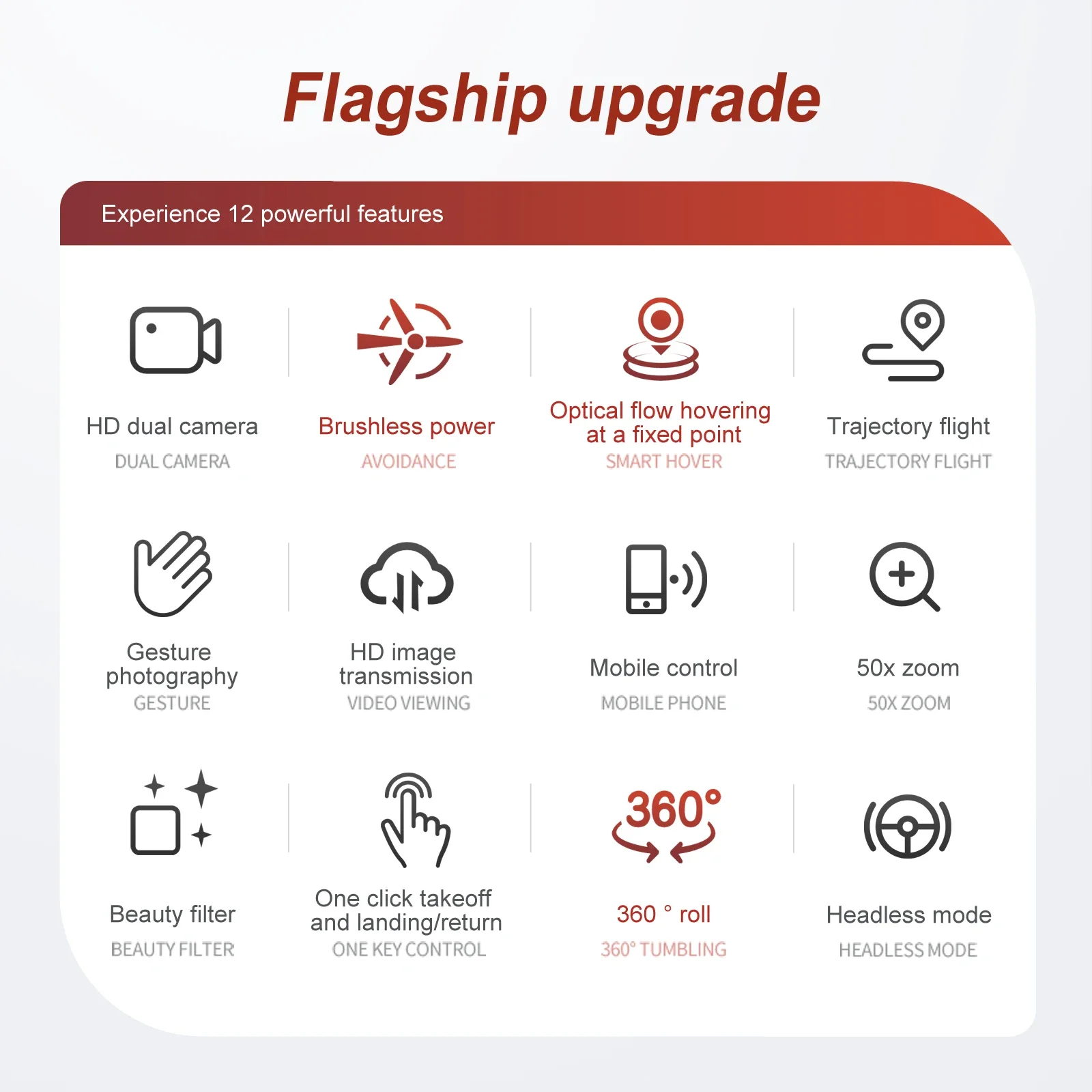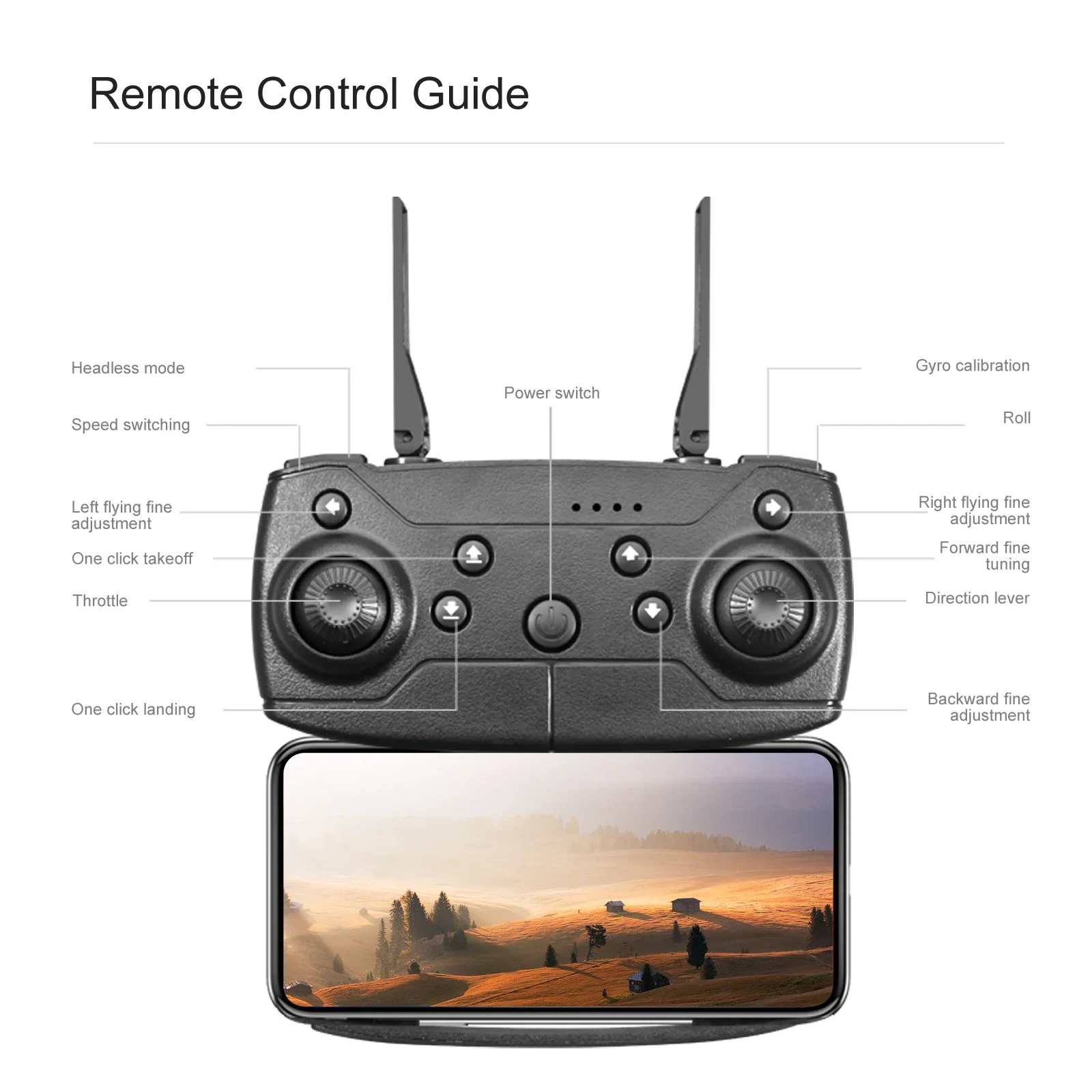 -Six axis gyroscope, more stable flight and more convenient control.