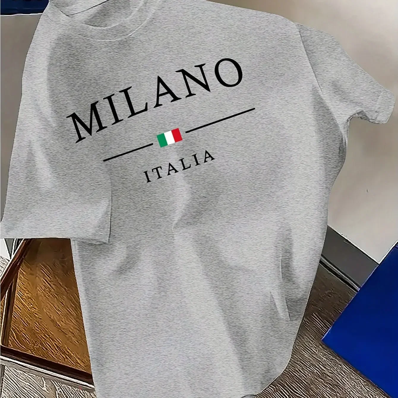 Summer fashion men’s T-shirt 100% pure cotton printed casual Milan Italian soft and breathable short-sleeved T-shirt for men